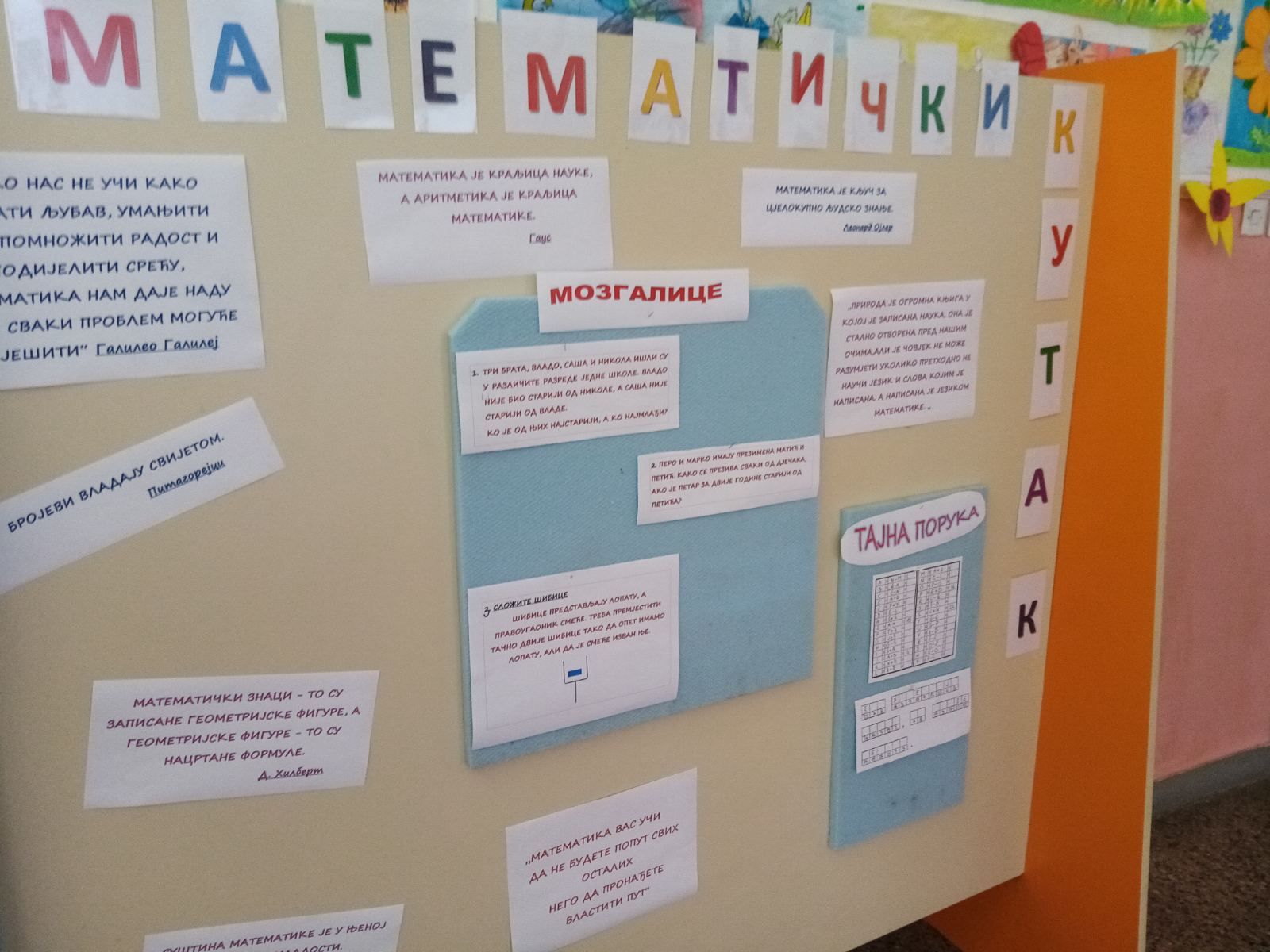 “Matematički kutak nastavnice Željke” u mojoj učionici.