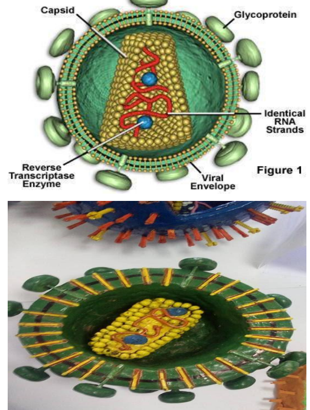 PRILOG 2. MODELI VIRUSA ( HIV, bakteriofag, virus gripe, virus svinjske gripe) predstavljene virusne čestice i njihovi sastavni dijelovi viđeni elektronskim mikroskopom. Na osnovu potrebnog materijala i radnih listića učenici su oblikovali i predstavili njihove sastavne dijelove.