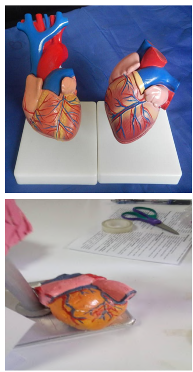 PRILOG 6. MODEL SRCA izgled zdravog srca napravljen od različitog materijala i predstavili djelove srca kao u orginalu. Za izradu ovog modela učenici su koristili gips, glinamol, boje, itd...