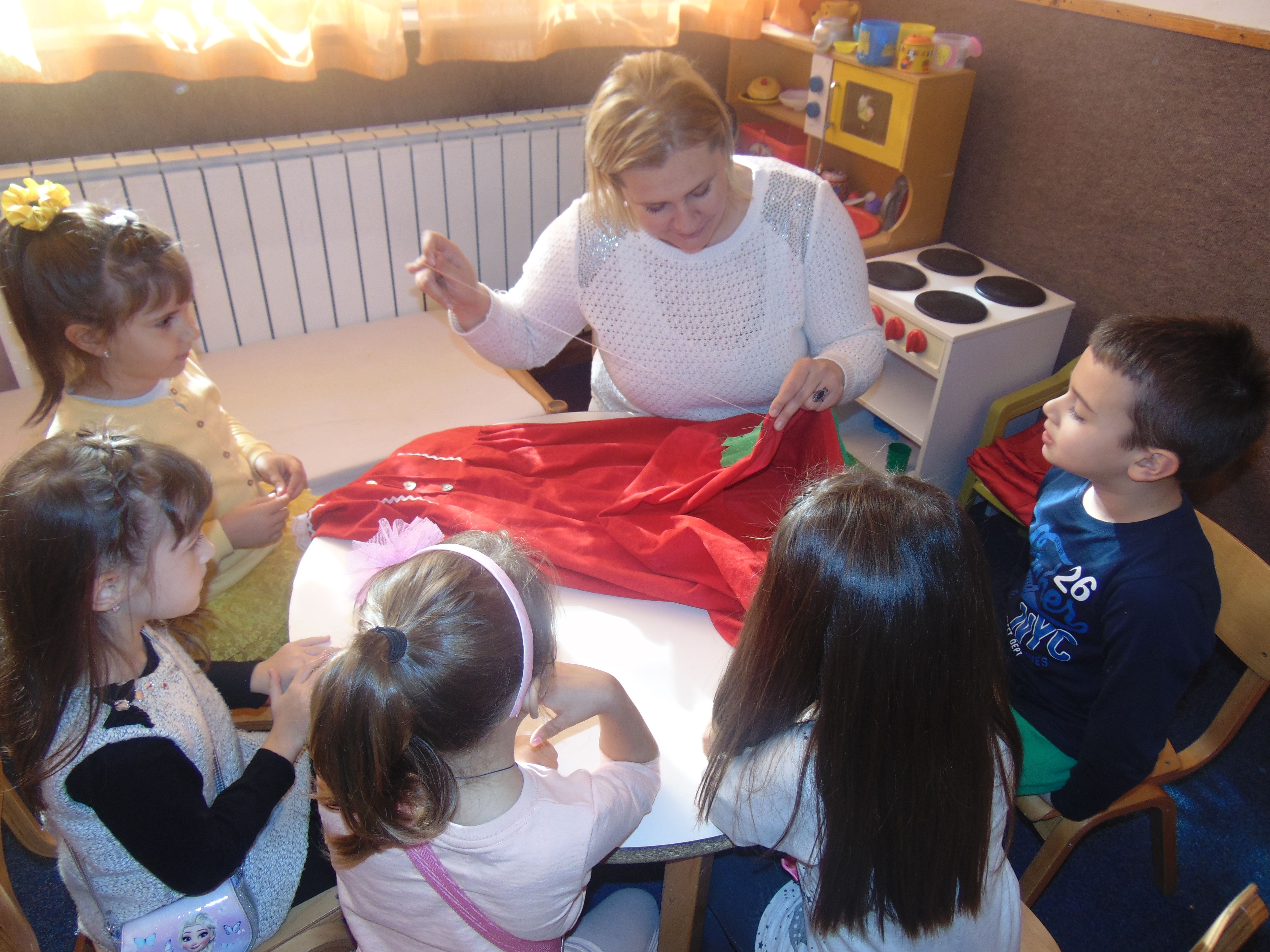 U toku mjesec dana odgajateljice su sa djecom kreirale, crtale, šile, lijepile, bojile sve potrebne dijelove za scenu koja se koristila za predstavu. Bogato iskustvo u krojenju i šivenju, te kreativne ruke i ideje naših odgajateljica su nam pomogle da osmislimo i samostalno sašijemo kostime za predstavu. Time smo pokazali djeci da starim i iskorištenim stvarima i predmetima možemo ponovo udahnuti život i dušu. U tom mjesecu radna krilatica nam je bila „Sve što je otpad nije smeće“. Djecu smo uključili na način da su lijepili dugmiće, mašne na kostime, te time razvijali finu motoriku, učenje po modelu, učenje imitacijom kao i divergentno mišljenje.