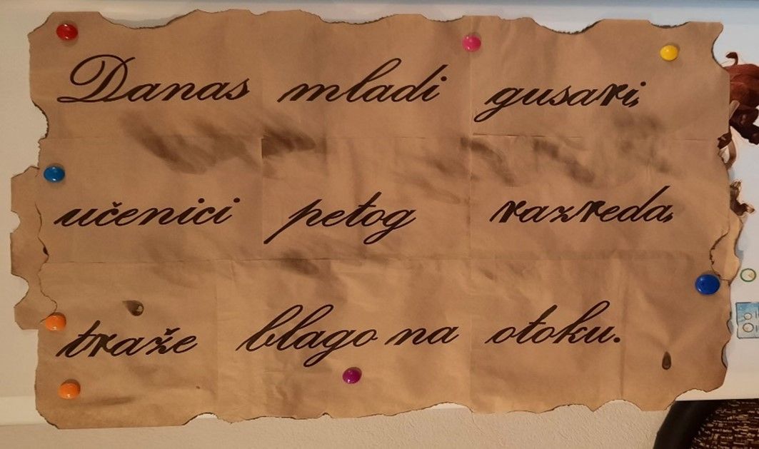 Za pokazano znanje učenici dobijaju prvi znak šifre koji učiteljica postavlja na zid.