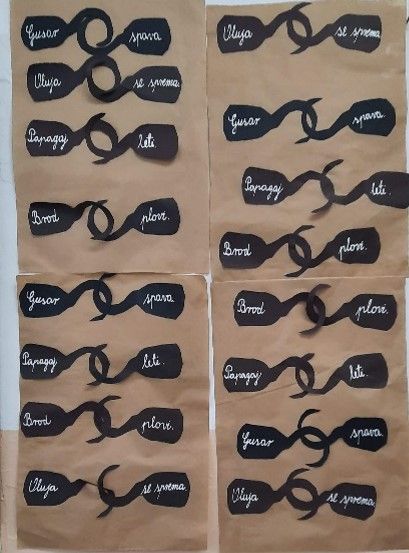 Sve grupe imaju isti zadatak. Kada završe, radove postavlja učiteljica na zid i po jedan član iz svake grupe analizira po jednu rečenicu.
