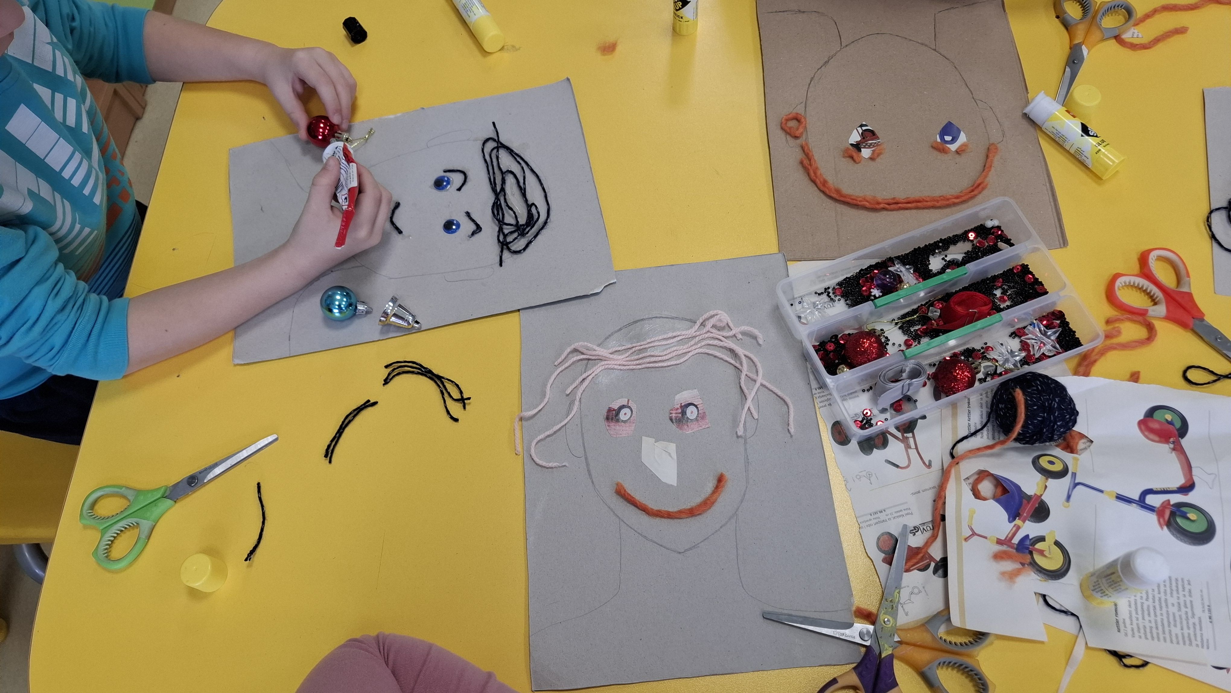Nakon čitanja i razgovora o priči, djeci ćemo predložiti da od raznovrsnog materijala naprave portret srećnog lica. Pokazaćemo jedan od radova koje smo izradili i objasniti korake.