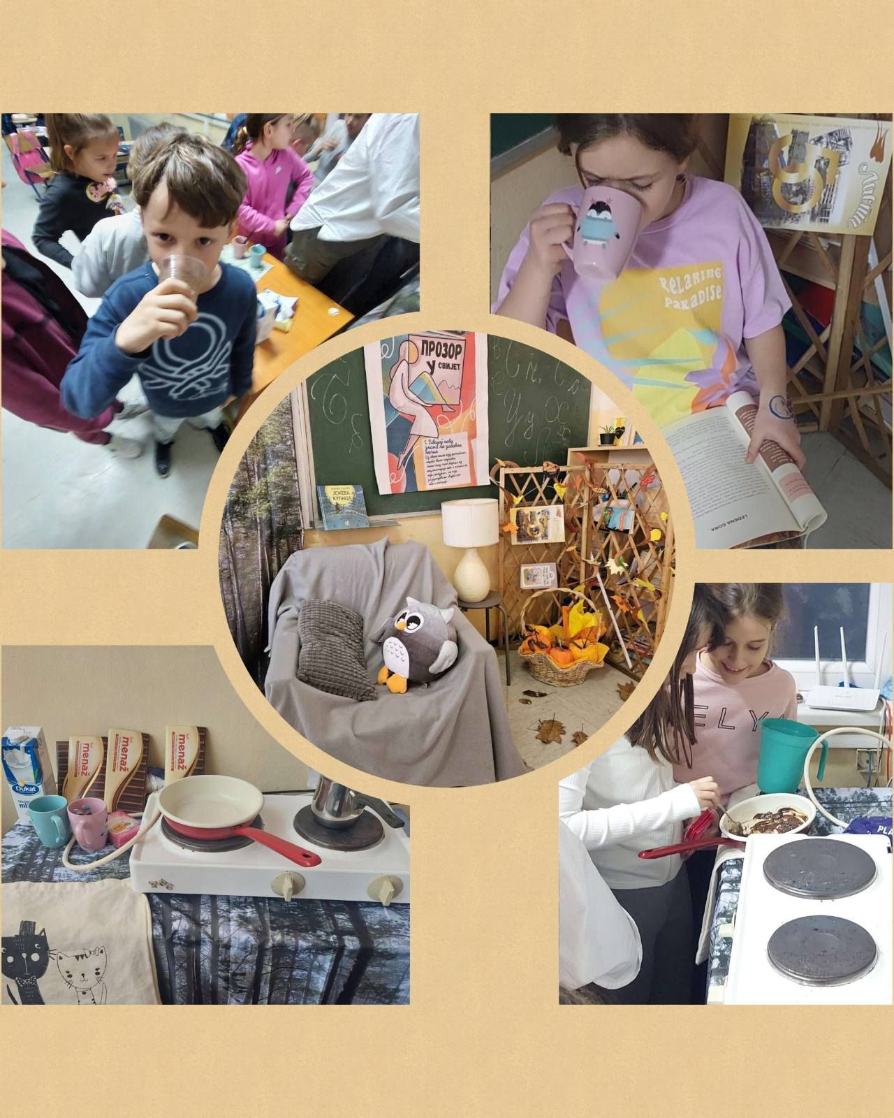 Učenici se smještaju u čitalački kutak uz toplu čokoladu.