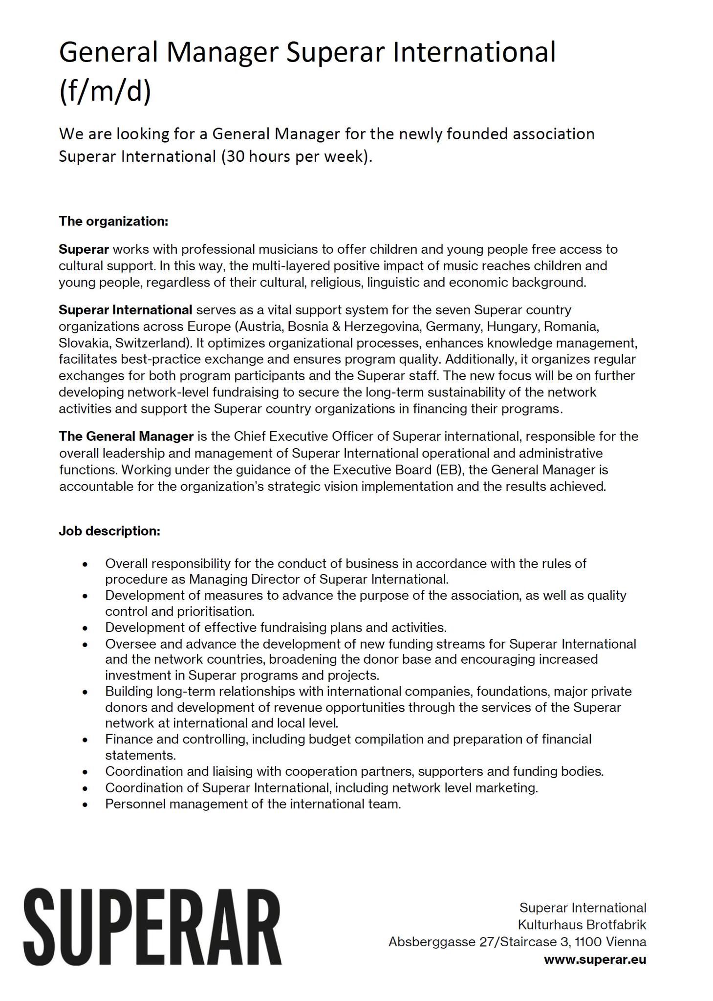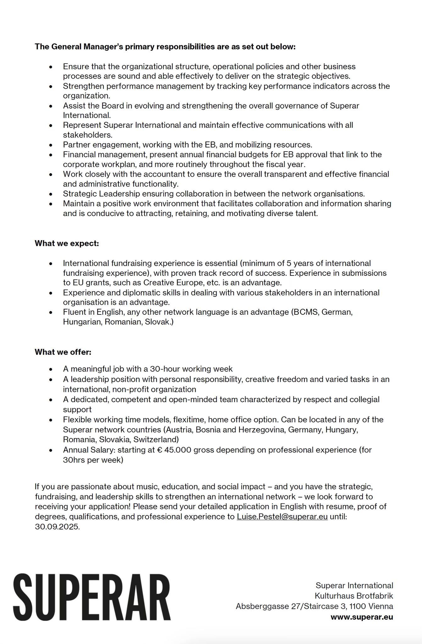 Superar International traži generalnog menadžera (ž/m/d, 30h/tjedan)