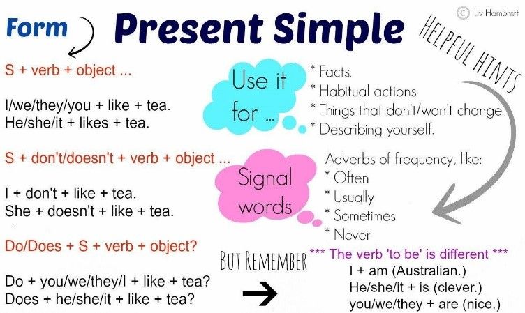 S:”We form the present tense using the base form of the infinitive (without the TO).